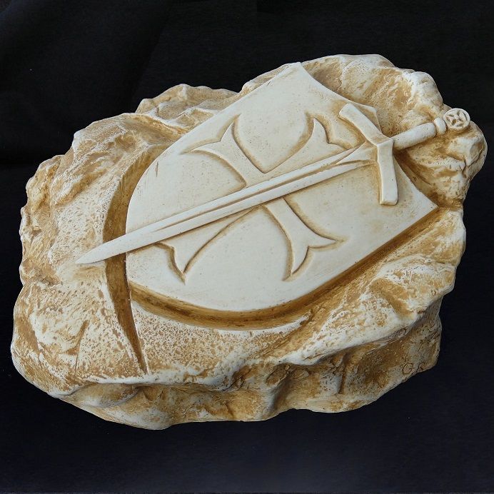 Χειροποίητη κατασκευή Ξίφος & ασπίδα ιπποτική Διαστάσεις 16 χ 14 χ 9 εκ Περιλαμβάνει κουτί συσκευασίας Παράδοση 20-30 ημέρες Handcrafted “Shield and Sword” The product is made from hard plaster Weight is approximately up to 1 kg. Size: 16 x 14 x 9cm The item can be painted by different color techniques such as (stone, bronze and clay) depending on customers requirements. * All items can be personalized with a copper inscription upon request. * Also note that we can accept special design orders, which can be made in any material you may request such as, Copper, Marble and Limestone. * Item comes with a box. * Gift wrapping available for all items.