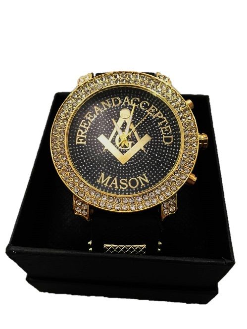 Ρολόι αναλογικό επίχρυσο zircon με μαύρο Καντράν και χρυσό σχέδιο διάμετρος λουράκι πλαστικό: 2.5cm Διάμετρος ρολογιού: 51mm Πάχος ρολογιού: 13mm